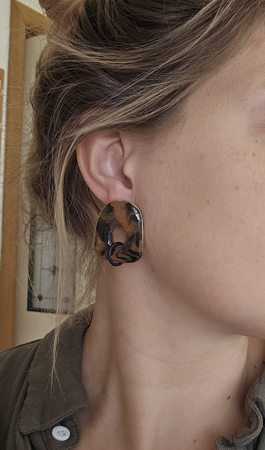 Due to the handmade nature of our earrings, and the lighting on individual screens, there may be variations in the size, colour and pattern of your individual piece.