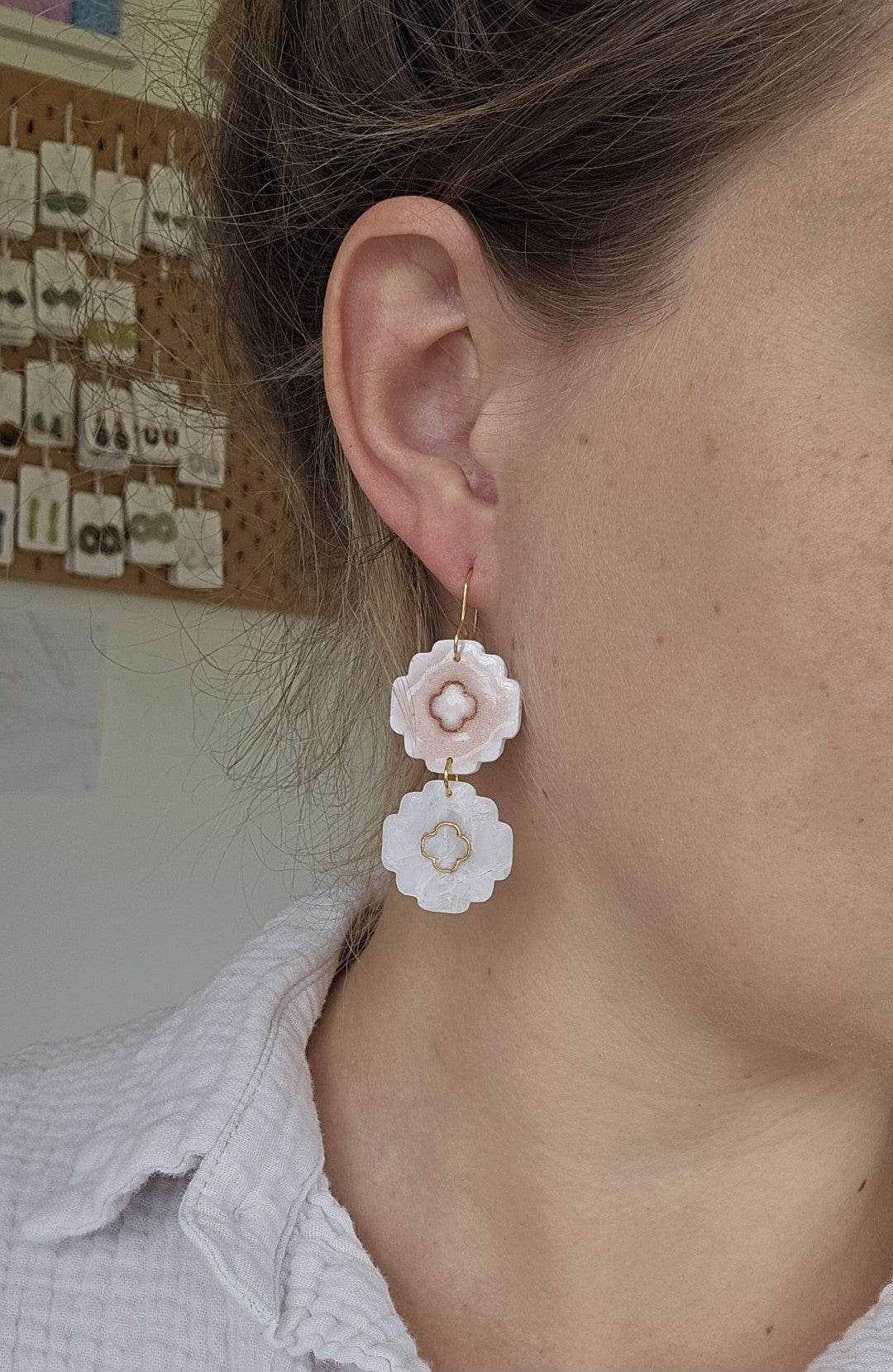 All earrings are handmade with polymer clay therefore they are lightweight and comfortable. Since they are not mass produced, no pair will be the exact same! We use stainless steel (304) for all of our jewellery (unless specified) and the lovely dangly additions are, in most case, brass.