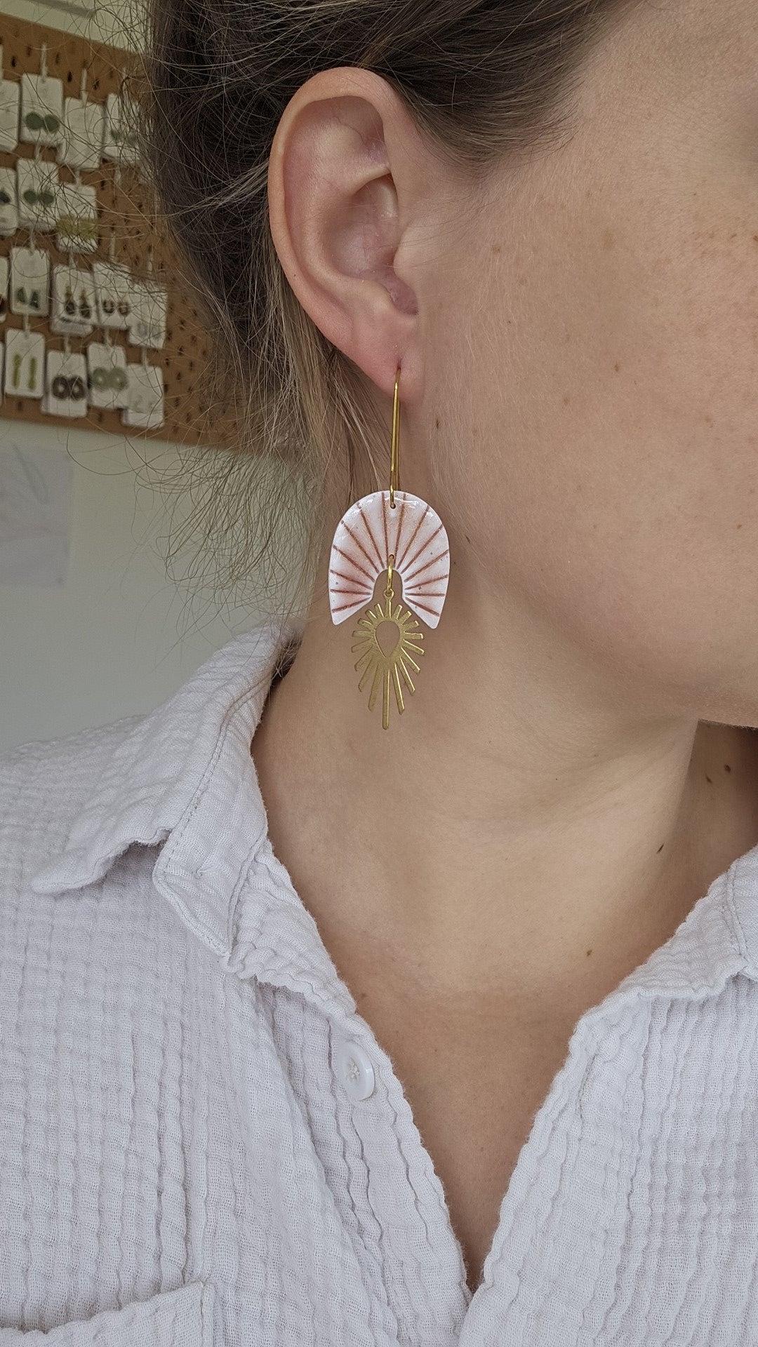 All earrings are handmade with polymer clay therefore they are lightweight and comfortable. Since they are not mass produced, no pair will be the exact same! We use stainless steel (304) for all of our jewellery (unless specified) and the lovely dangly additions are, in most case, brass.
