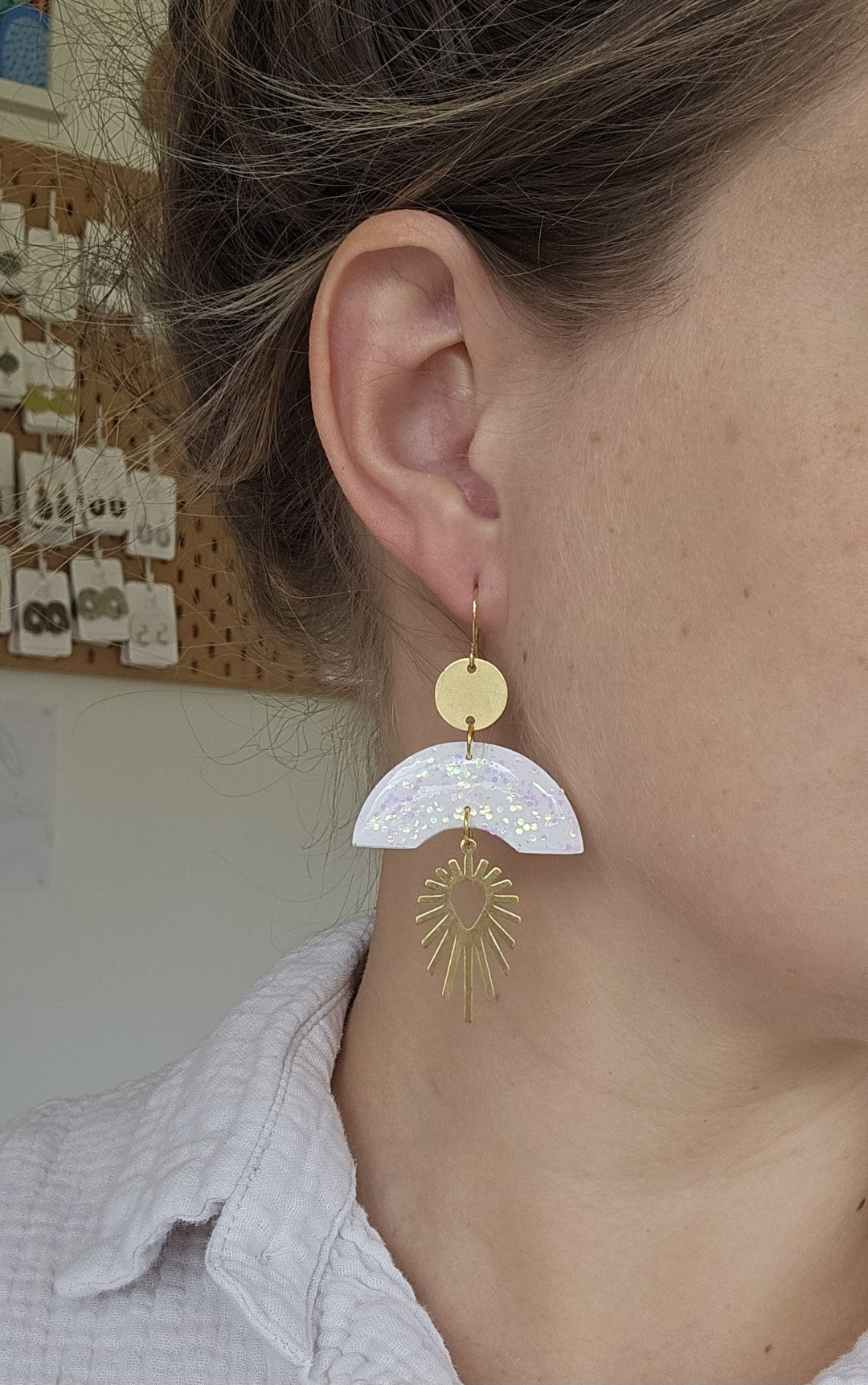 All earrings are handmade with polymer clay therefore they are lightweight and comfortable. Since they are not mass produced, no pair will be the exact same! We use stainless steel (304) for all of our jewellery (unless specified) and the lovely dangly additions are, in most case, brass.
