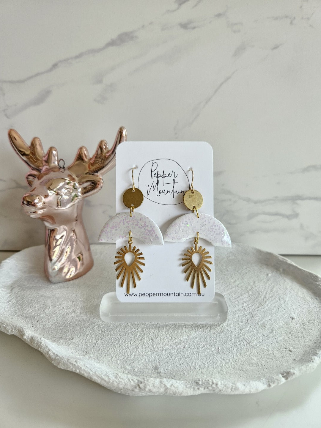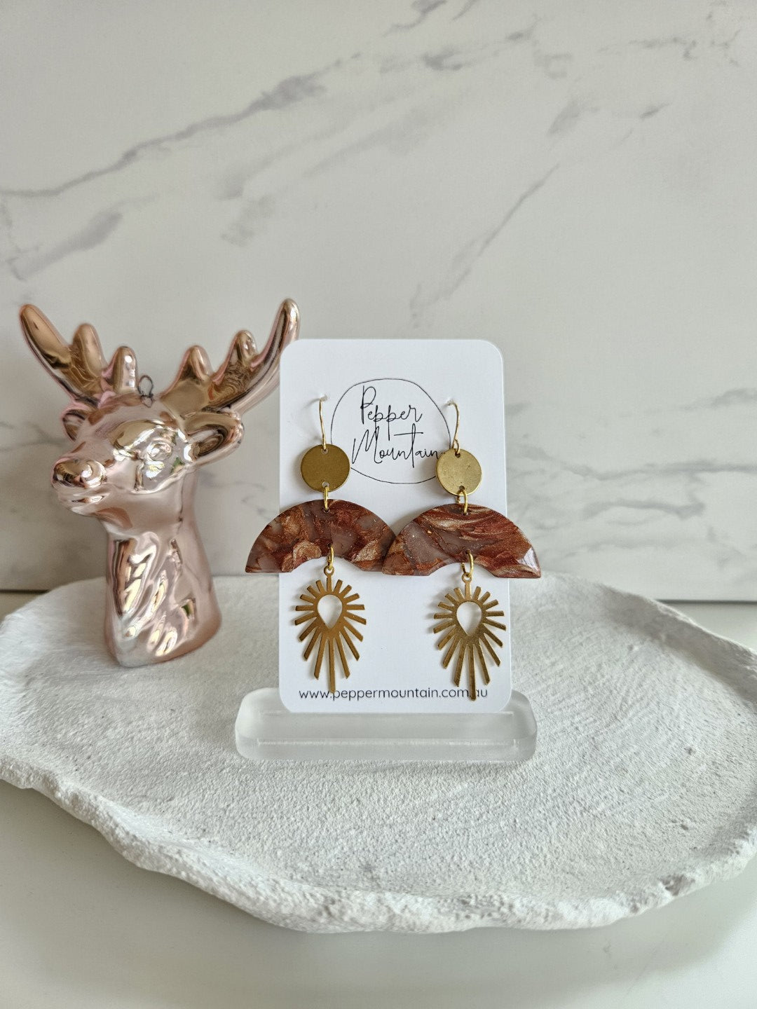 Due to the handmade nature of our earrings, and the lighting on individual screens, there may be variations in the size, colour and pattern of your individual piece.