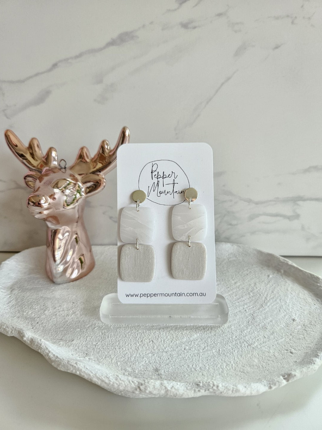 All earrings are handmade with polymer clay therefore they are lightweight and comfortable. Since they are not mass produced, no pair will be the exact same! We use stainless steel (304) for all of our jewellery (unless specified) and the lovely dangly additions are, in most case, brass.