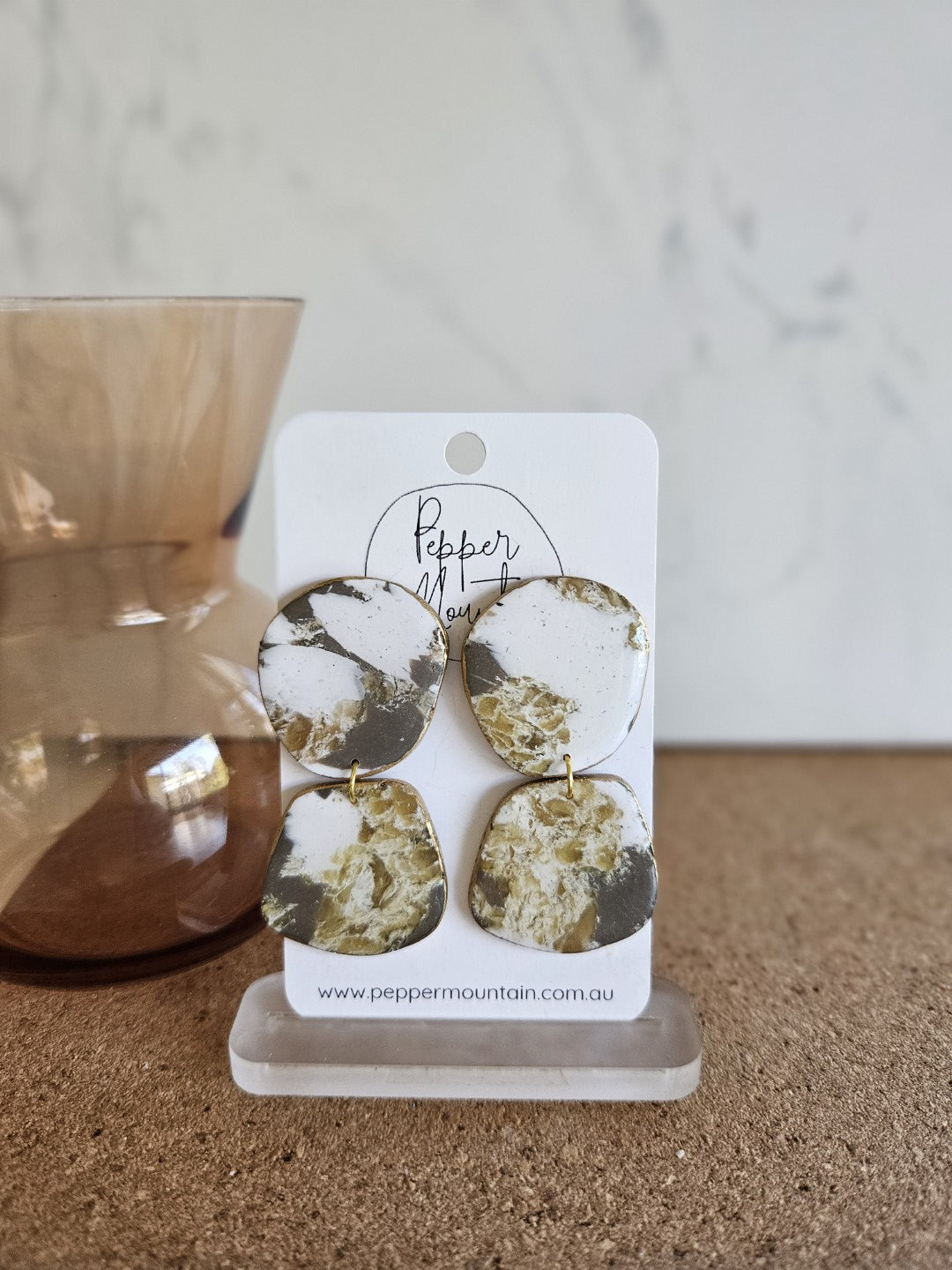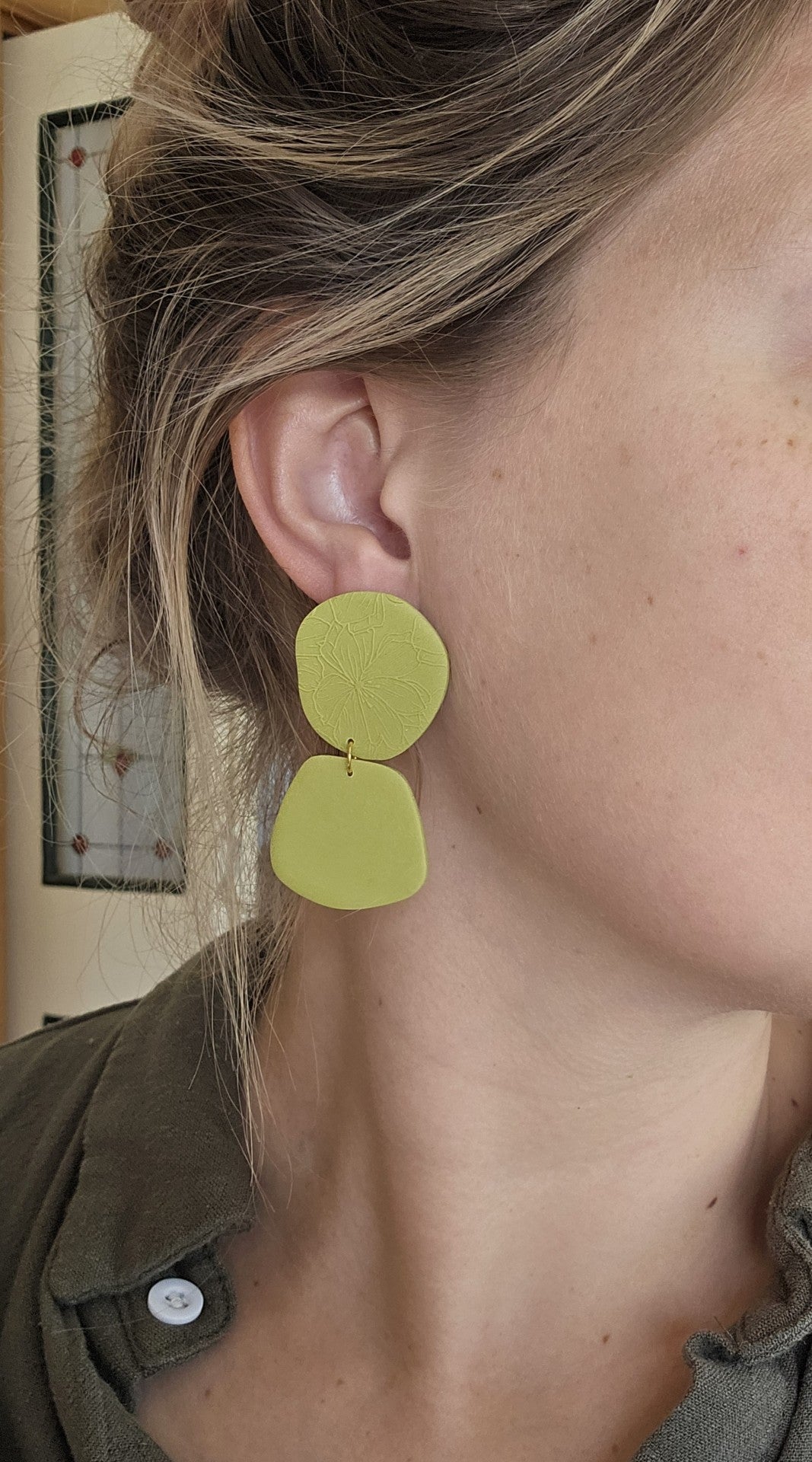 All earrings are handmade with polymer clay therefore they are lightweight and comfortable. Since they are not mass produced, no pair will be the exact same! We use stainless steel (304) for all of our jewellery (unless specified) and the lovely dangly additions are, in most case, brass.