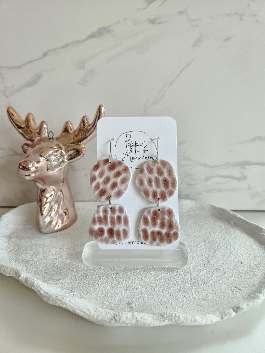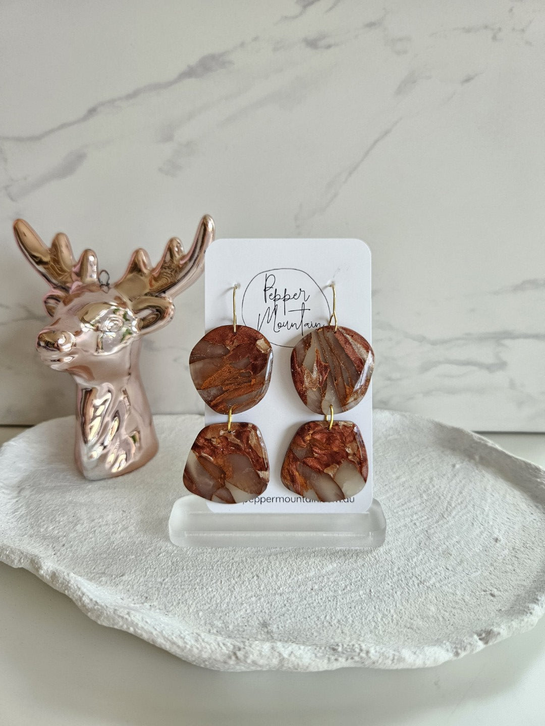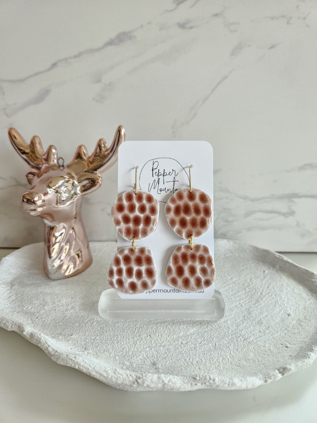 Due to the handmade nature of our earrings, and the lighting on individual screens, there may be variations in the size, colour and pattern of your individual piece.