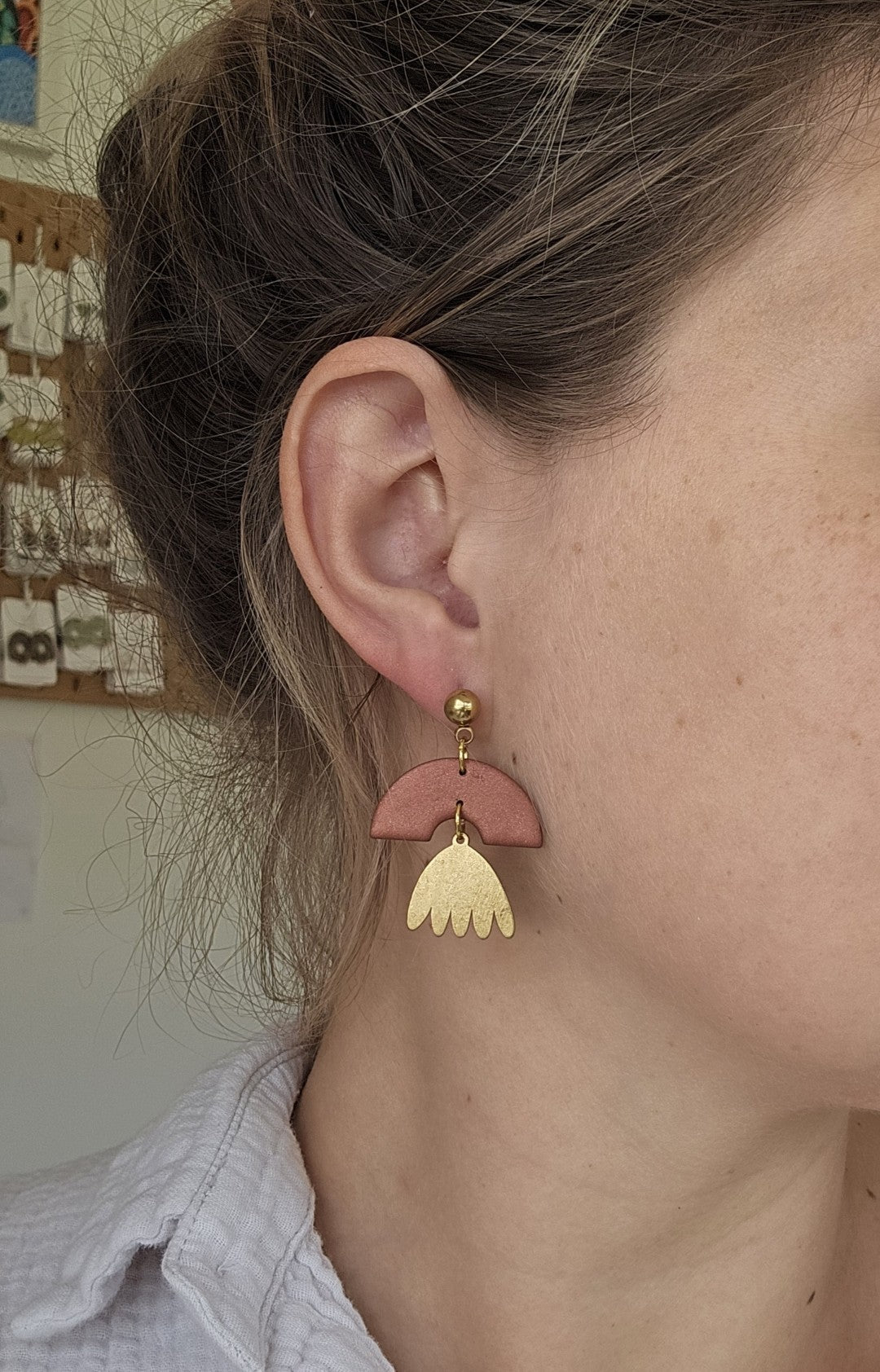 All earrings are handmade with polymer clay therefore they are lightweight and comfortable. Since they are not mass produced, no pair will be the exact same! We use stainless steel (304) for all of our jewellery (unless specified) and the lovely dangly additions are, in most case, brass.